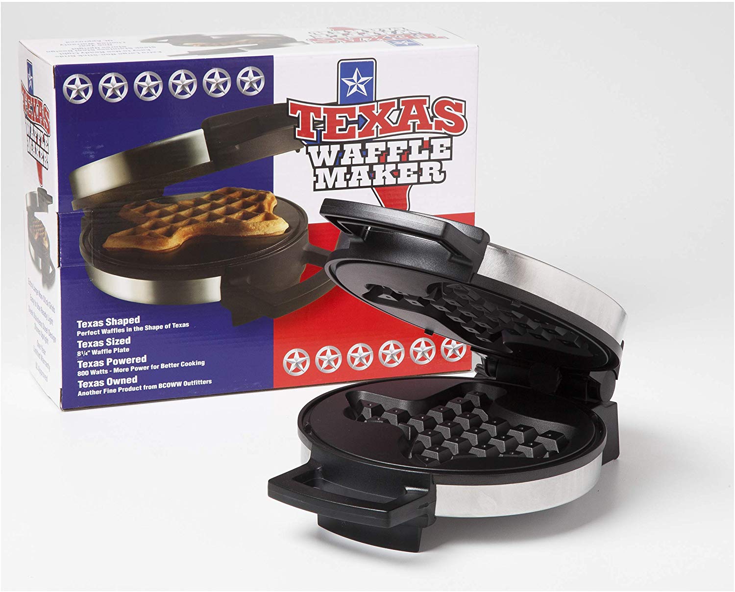 My son is in Texas now and my wife has become a fan of everything Texas because of it. So I got her this waffle maker for her birthday. I am a hero!The construction seems a bit flimsy for this appliance, but as there are not a lot of options for Texas shaped waffle irons…Be sure to oil it well before the first use. This isn’t a criticism, rather just sound advise for any new waffle maker (it also says to do this in the instructions for those of you who never read the instructions.)The maker heats up quickly and can put out waffles fast enough to keep 4, maybe 5, people going.I’m just glad he’s in Texas. I don’t know that a Rhode Island waffle maker would do much for my appetite.
